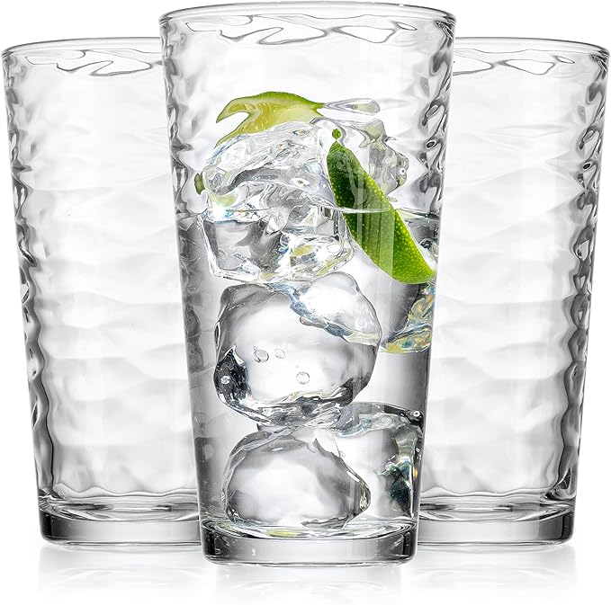 - 🔁HIGHLY VERSATILE: With 10 generous 17-oz capacity glasses and a sturdy bottom design that will prevent spills and tip-overs, this glass set is suitable for serving your favorite beverages, be it lemonade, long drinks, cocktails, frappe, smoothies, milkshakes, sodas, juice, and more.