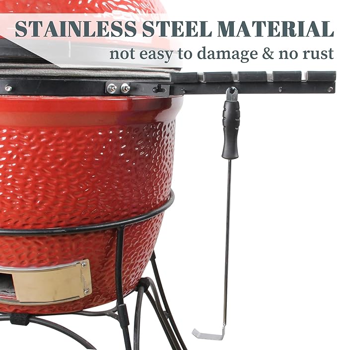 BBQ Ash Tool for Big Green Egg Stainless Steel Ash Tool Poker for Kamado Joe Charcoal Smoker Wood Burning Stove Ash Rake,Ash Tool for Other Charcoal Grills Corner Cleaner Accessories 17.5"
