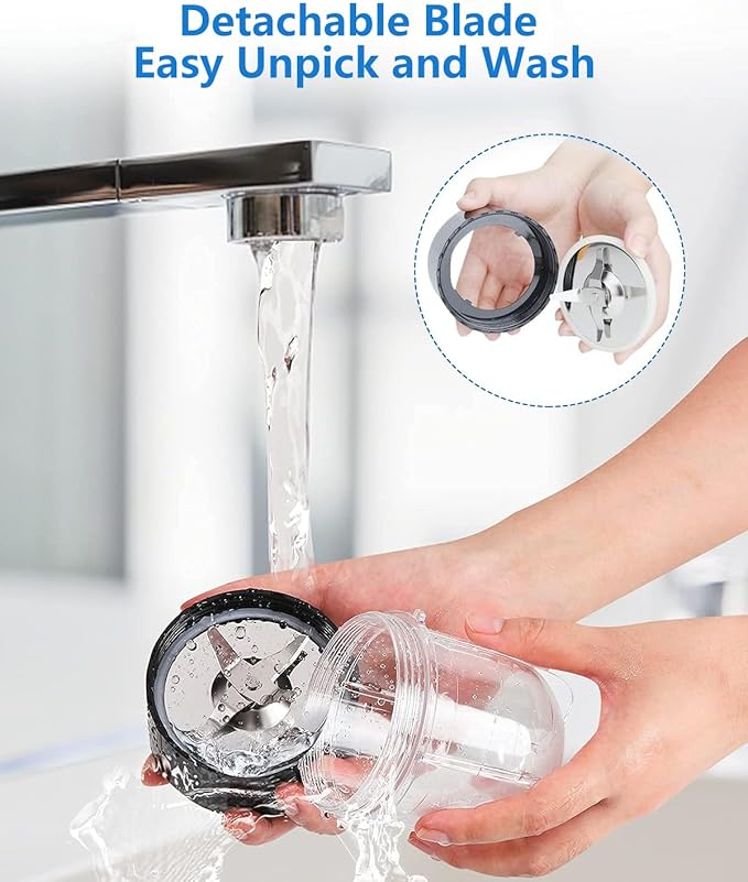- Machine Washable and Removable:Except for the main body of the motor, Personal small mixer grinder can be simply rinse with water or placed on the top of the dishwasher for cleaning. The removable blade design ensures furtherly cleaning.