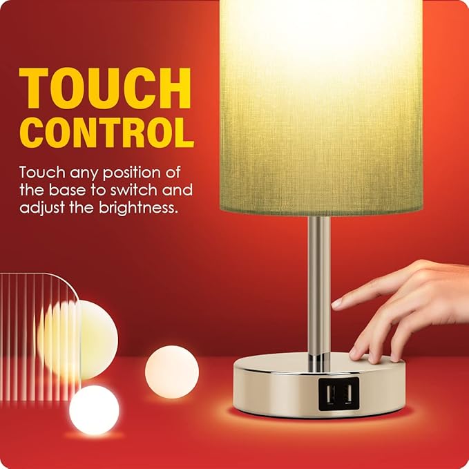 - ✔️【3 WAY SMOOTH DIMMABLE TOUCH CONTROL】- The dimmable bedside table lamp offers 3 level brightness options (Low, Medium, High). Just simply tap on anywhere of the metal base to adjust the lighting to meet your different needs. Nightlight for a steady sleep or nursing. Accent lighting for a warm mood. Proper high comfortable brightness for studying or working. Super handy to operate.
