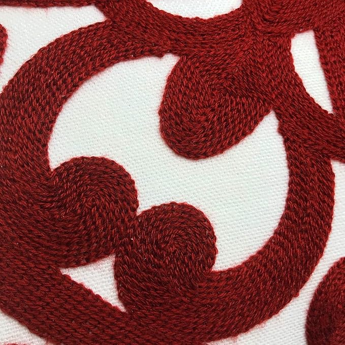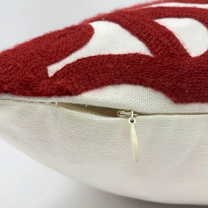 Alysheer Embroidered Decorative Throw Pillow Cover 18x18 inch, Classic Boho Mandala Knit Pattern, Cozy Soft 100% Cotton Canvas Fall Cushion Case for Sofa Couch Living Room (Burgundy Red)