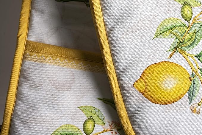 Maison d' Hermine Double Oven Mitts 100% Cotton 7"x35" Double Oven Mitt Heat Resistant BBQ Cooking Gloves with Loop, Baking, Grilling, Home, Kitchen, Handling Hot Pans Spring Summer (Limoncello)