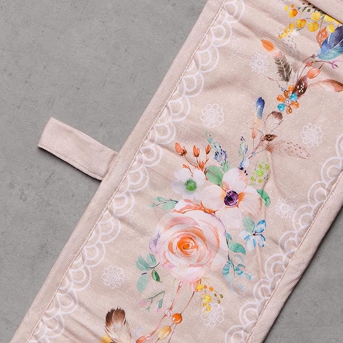 - Package includes: Includes 1 double oven mitt sized 7"x35". Perfect for handling hot cookware safely while adding a touch of European elegance to your kitchen. Designed in Europe and made in India with care