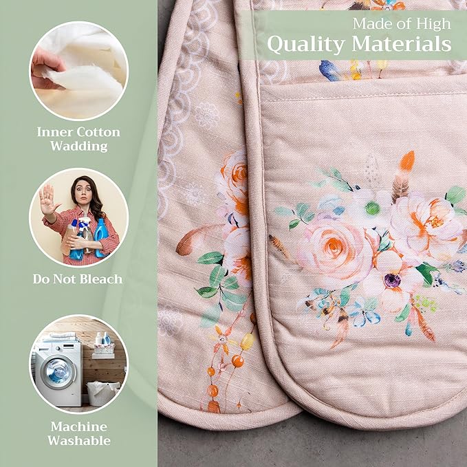 - 100% Quilted cotton: Crafted from premium quilted cotton for superior heat resistance and durability. This double oven mitt offers a soft, flexible grip and protects your hands during baking, roasting, or grilling