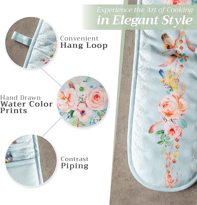 - Package includes: Includes 1 double oven mitt sized 7"x35". Perfect for handling hot cookware safely while adding a touch of European elegance to your kitchen. Designed in Europe and made in India with care