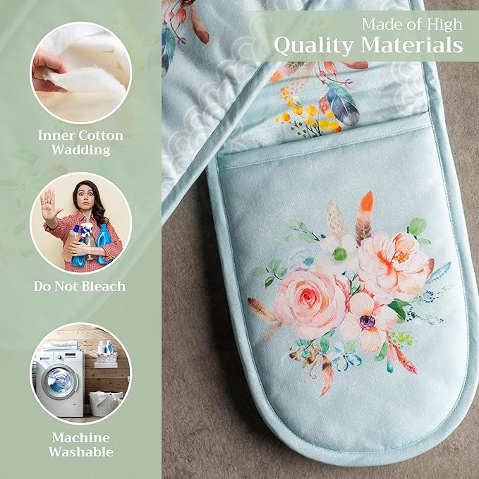 - 100% Quilted cotton: Crafted from premium quilted cotton for superior heat resistance and durability. This double oven mitt offers a soft, flexible grip and protects your hands during baking, roasting, or grilling
