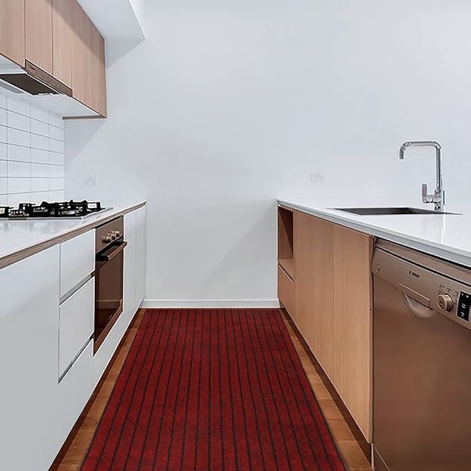 3' x 77' Runner Rugs with Rubber Backing, Indoor Outdoor Utility Carpet Runner Rugs, Stripe Red, Can Be Used as Aisle for The RV and Boat, Laundry Room and Balcony
