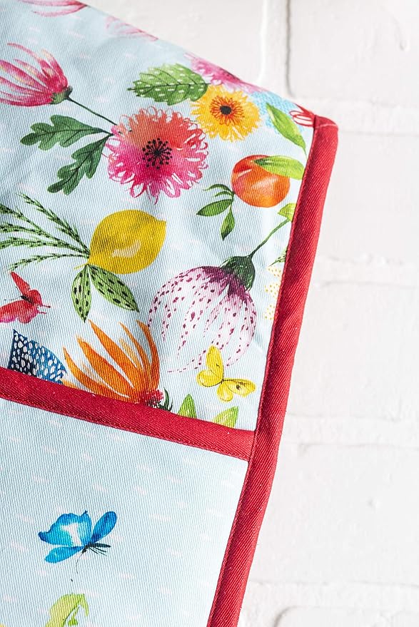 - Package includes: Includes 1 double oven mitt sized 7"x35". Perfect for handling hot cookware safely while adding a touch of European elegance to your kitchen. Designed in Europe and made in India with care