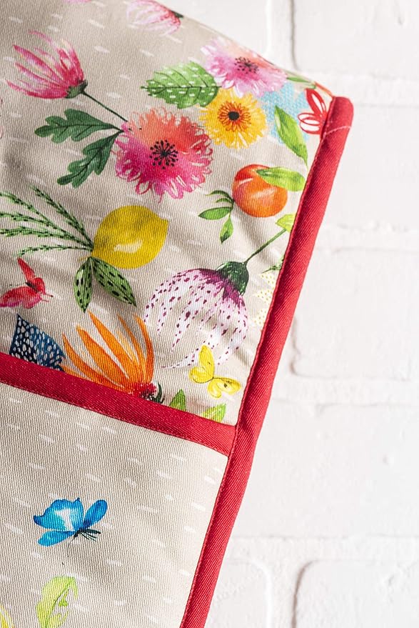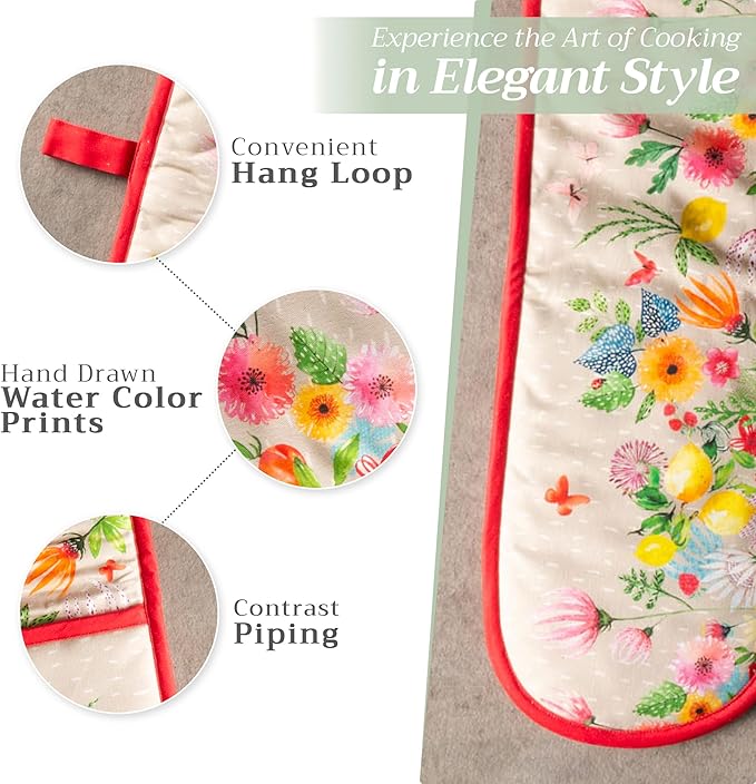 - Package includes: Includes 1 double oven mitt sized 7"x35". Perfect for handling hot cookware safely while adding a touch of European elegance to your kitchen. Designed in Europe and made in India with care