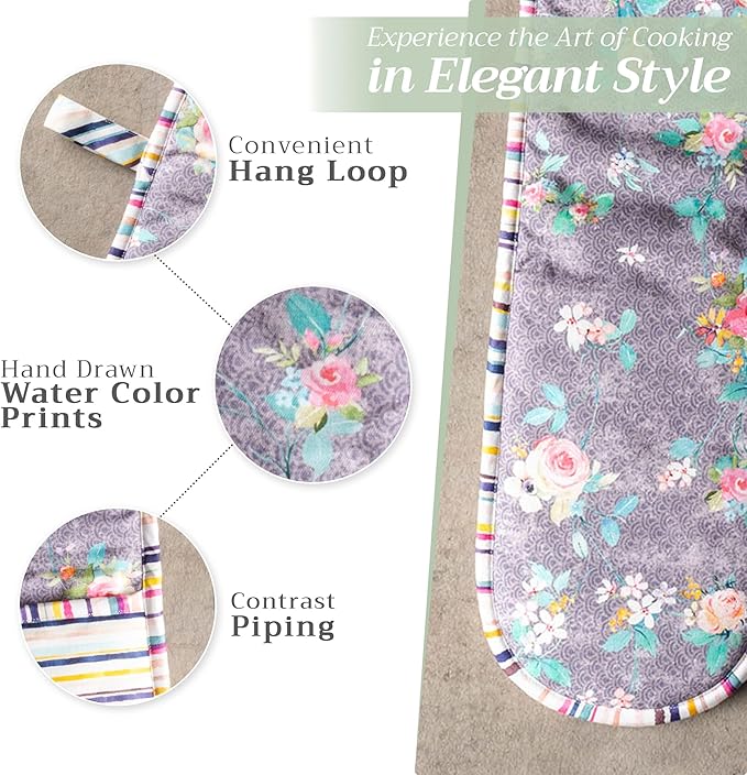 - Package includes: Includes 1 double oven mitt sized 7"x35". Perfect for handling hot cookware safely while adding a touch of European elegance to your kitchen. Designed in Europe and made in India with care