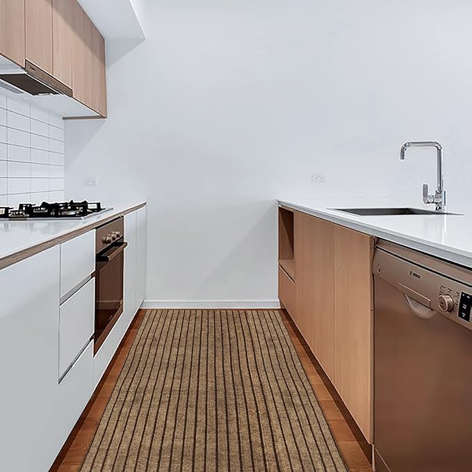 4' x 43' Runner Rugs with Rubber Backing, Indoor Outdoor Utility Carpet Runner Rugs, Stripe Brown, Can Be Used as Aisle for The RV and Boat, Laundry Room and Balcony