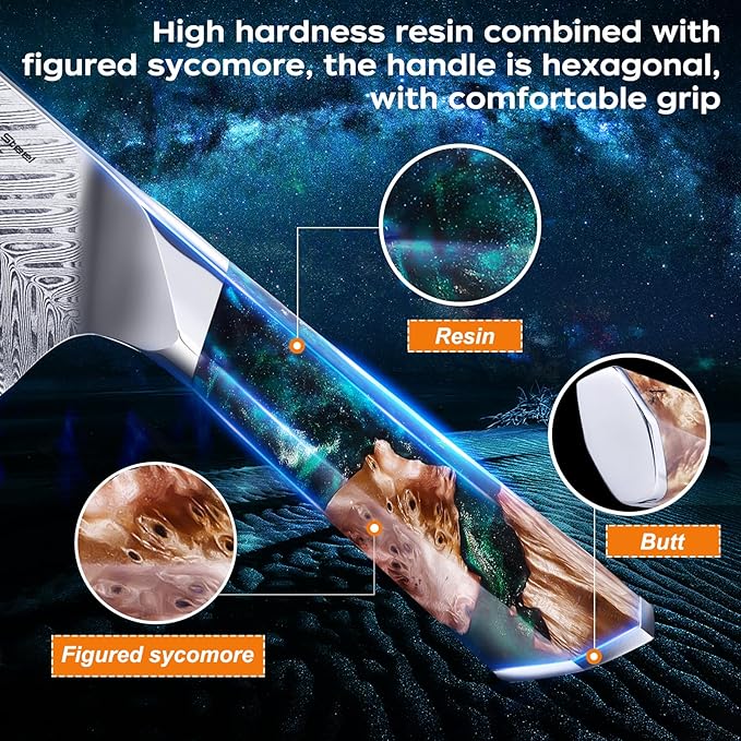- Design - Our Nebula series has fish-bone pattern on its blade, which is formed naturally while forging. The handle is hexagonal, the ergonomic design enable users to work long time without fatigue. The whole knife is unique and elegant, totally a great gift option for your friends and family.