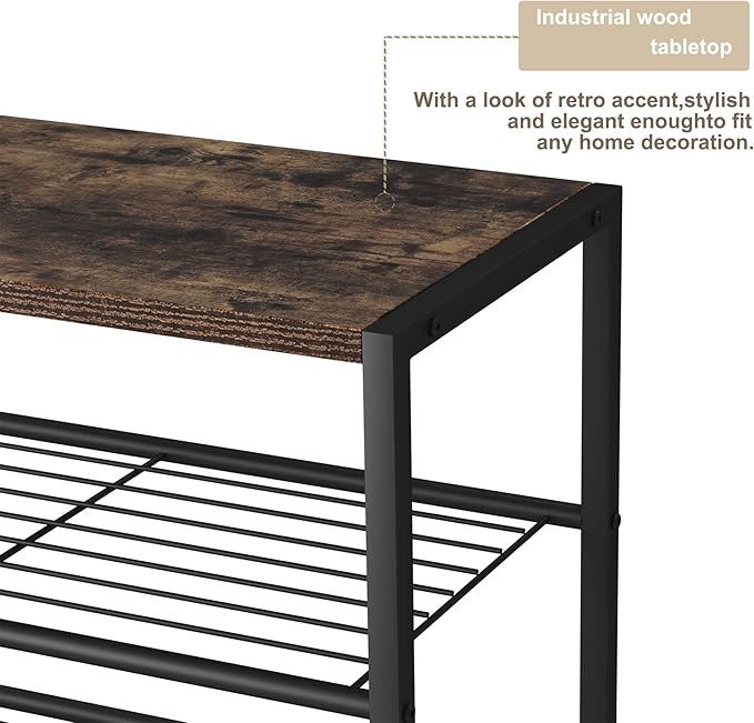 - Industrial Shoe Organizer with Large Tabletop: Specially designed with a look of wood accent, this small shoe rack is decorative enough to suit any corner of your house.