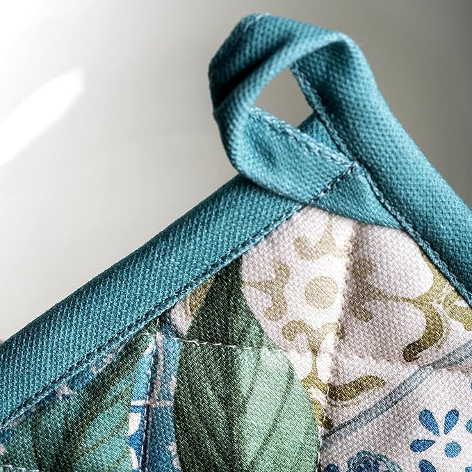 - Artistic style: Add charm to your kitchen with our oven mitt pot holder set featuring watercolor designs inspired by traditional European motifs. Stylish and functional kitchen accessories for every home cook or gift occasion.