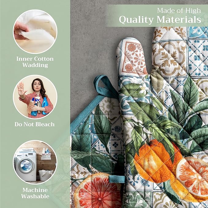 - Premium Quality: Crafted from quilted 100% cotton, this heat resistant oven mitt and pot holder set offers comfort, flexibility, and protection from hot cookware. Ideal cotton oven mitts for daily kitchen use and cooking safety