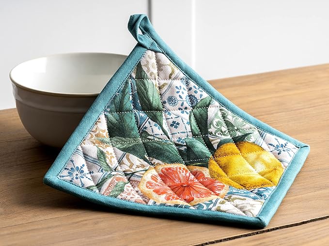 Maison d' Hermine 100% Cotton Oven Mitt & Pot Holder Set (7.5"x13" & 8"x8") Heat Resistant BBQ Cooking Gloves with Loop, Baking, Grilling, Kitchen, Handling Hot Pans Spring/Summer (Agrume)