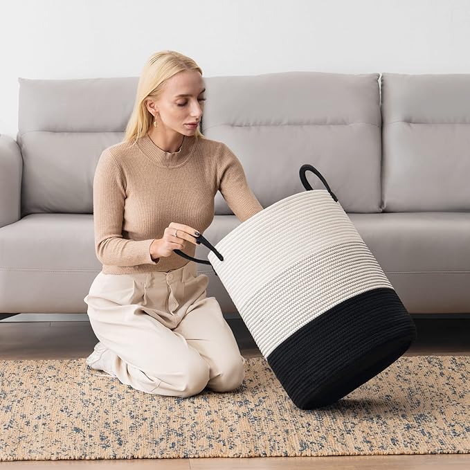- 【Eco-friendly Tall Hamper】 15D x 20H inches tall round laundry hamper is 100% natural hand woven cotton thread rope has no plastics, harsh chemicals, toxins, or harmful additives. Perfect for clothes, blanket, throws and stuffed animals