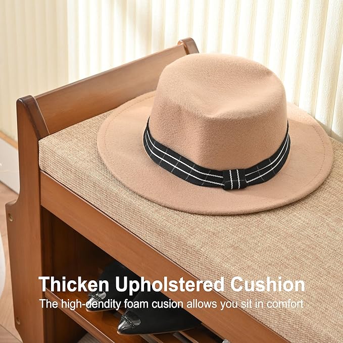 - Easy to clean -This shoe storage bench frame is easy to clean. You can only use a rag to remove the dust on it. The seat cushion is made of soft sponge and covered with high-quality breathable linen, which is easy to remove and clean.