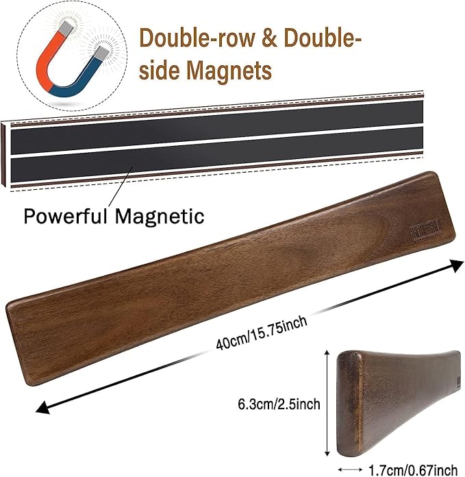 - 【Super Strong Magnet】 Built-in two rows of powerful magnets running through the entire strip, stronger adsorption force allow even your largest knives to hang safely and securely, ultra sturdy and easy to clean up.