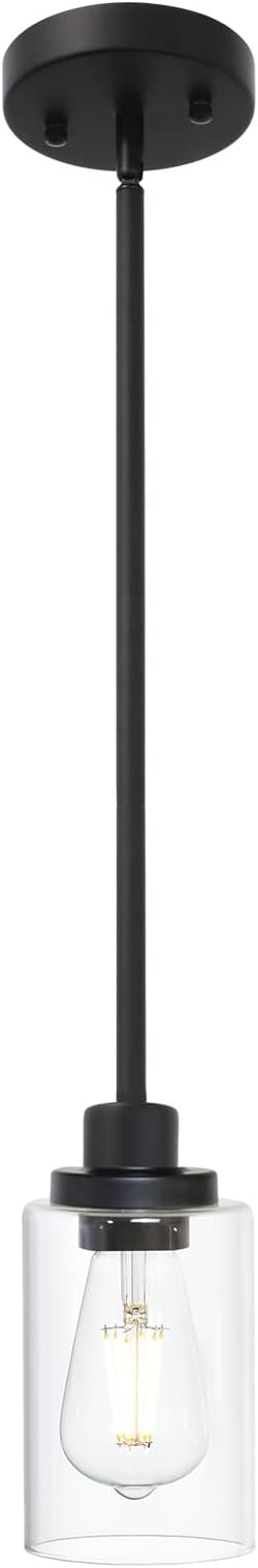 Black Industrial Pendant Light Fixtures, Kitchen Hanging Lighting with Clear Glass Cylinder Shade for Farmhouse Dining Room Coffee Bar Bedroom