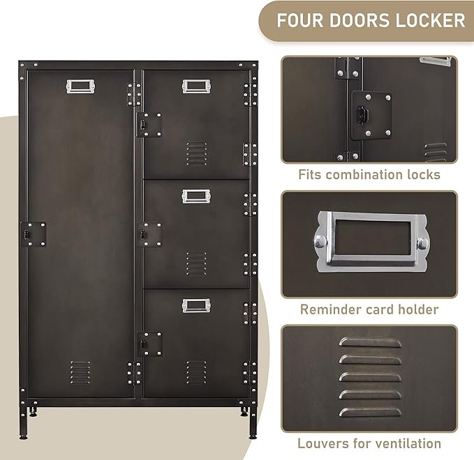- 【4-Doors Metal Locker】STANI Metal lockers are made of high-quality steel. Whole-in-one reinforced heavy duty metal frame,solid and strong. All doors can be locked to protect your belongings.