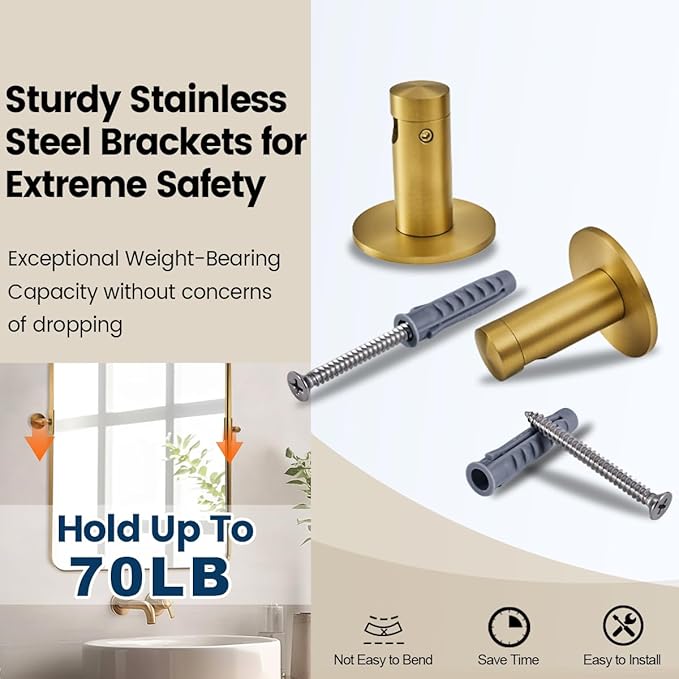 - Multiple Upgrades: Several updates to enhance the tilting angle and safety; Unlike the common two-screw fixing styles found in the market, our latest base design conceals screws entirely from view, achieving a seamless integration with the mirror frame