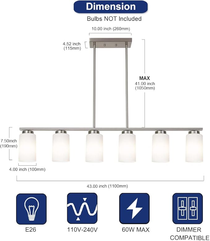 - UNIQUE DESIGN - This chandelier with brushed nickel finish clean lines, open frame design and 6 opal white cylinder lampshades, which bring contemporary style to your home and bring more brilliance to your life.