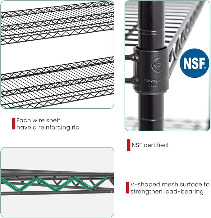 - Multiple Usage:The metal shelf with super storage function can be placed in the kitchen, bathroom, room, living room, warehouse, office, industry, commercial exhibition, hotel, supermarket, etc