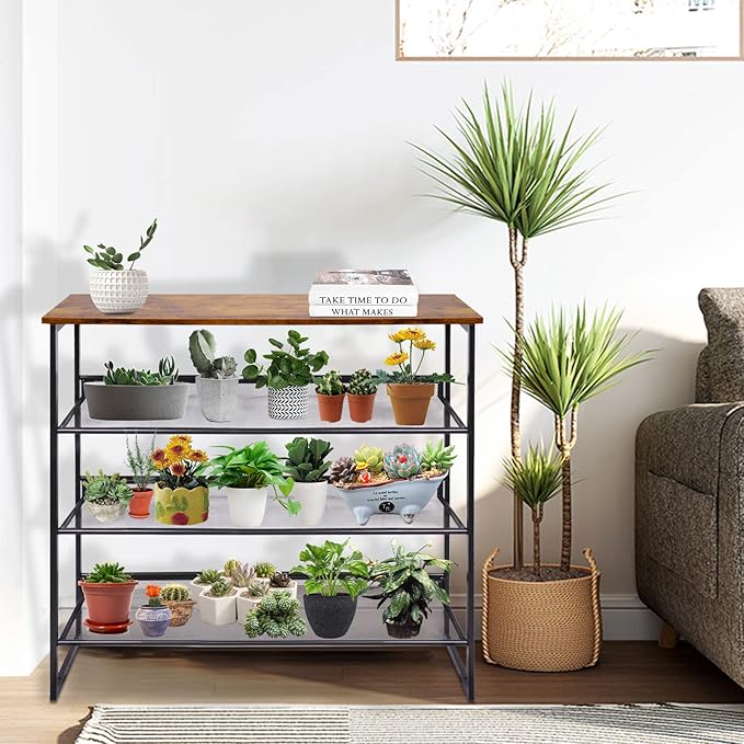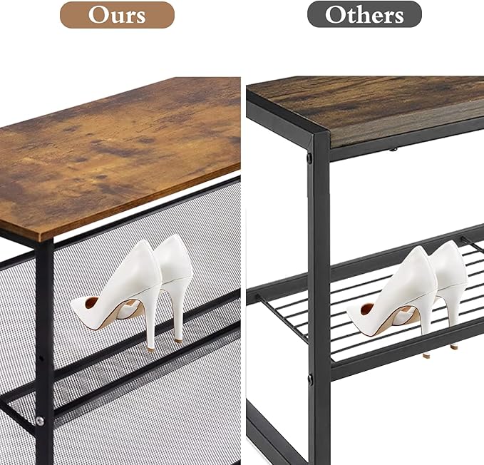 - BEAUTIFUL & GENEROUS: When your friends enter your entrance, they will be impressed by this attractive shoe rack, which is made of elegant wood panels and rustic brown and sturdy metal frames.