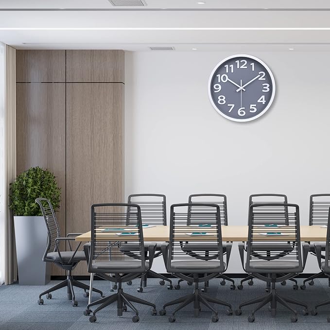 Wall Clock 12 Inch Silent Non-Ticking Battery Operated Clock Big Numbers Easy to Read Wall Clocks Decorative for Bathroom Office Kitchen Bedroom (Gray)