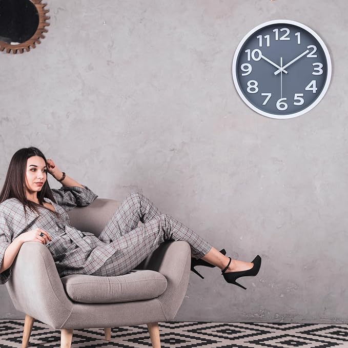 - [Easy to Read]--12 Inch wall clock with large bold 3D numbers make it easy to see from any corner of your room.