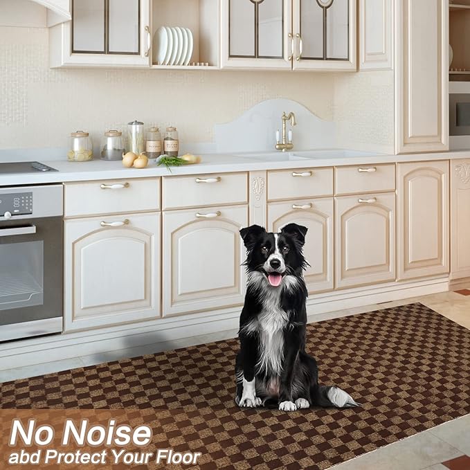 4' x 26' Runner Rugs with Rubber Backing, Indoor Outdoor Utility Carpet Runner Rugs, Checkered Brown, Can Be Used as Aisle for The RV and Boat, Laundry Room and Balcony