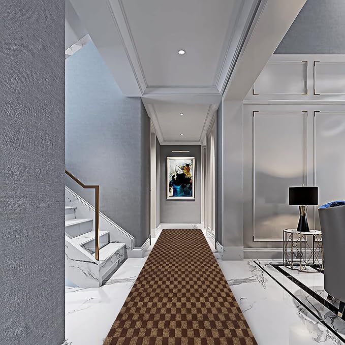 2' x 60' Runner Rugs with Rubber Backing, Indoor Outdoor Utility Carpet Runner Rugs, Checkered Brown, Can Be Used as Aisle for The RV and Boat, Laundry Room and Balcony