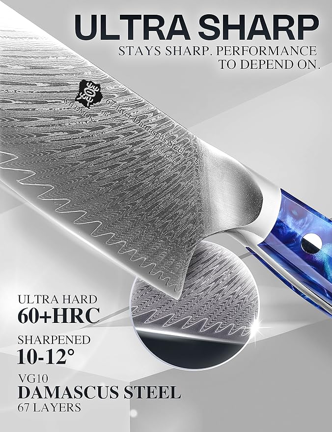 - 【Ultra Sharp Blade】With the 10Cr core, the blade is incredibly strong and stable. The razor sharp edge could be kept for months of frequent daily use. With outstanding sharpness, you could cutting, chopping, slicing, and mincing for processing chicken, beef, vegetables, fruits, fish, and various kitchen foods.