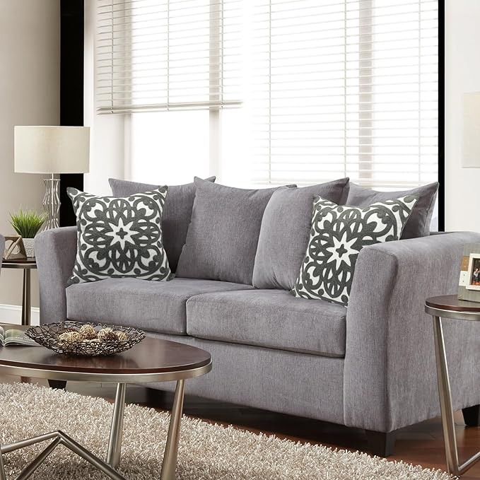 Alysheer Embroidered Decorative Throw Pillow Covers 18"x18" Set of 2 Pieces, Classic Boho Mandala Knit Pattern, Durable Cotton Canvas Cozy Gray Cushion Cases for Sofa Couch Living Room(Grey)