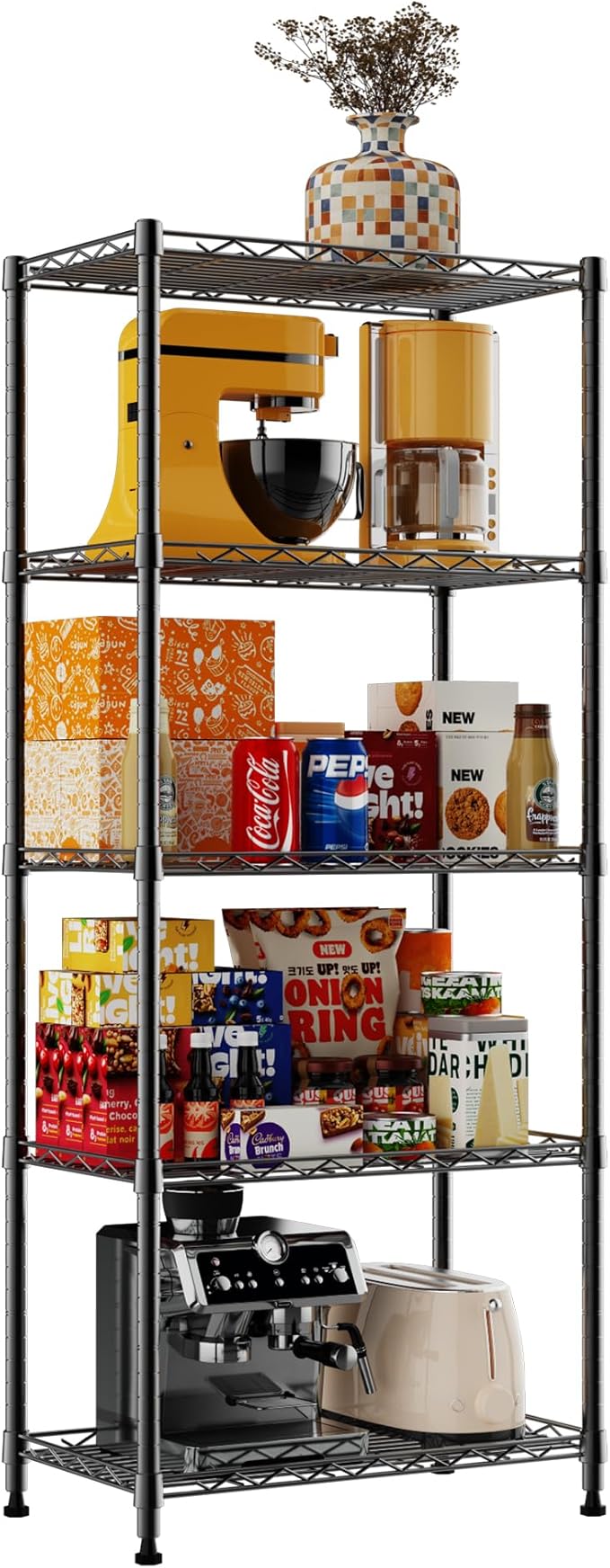 REGILLER 5-Wire Shelving Metal Storage Rack Adjustable Shelves,Standing Storage Shelf Units for Laundry Bathroom Kitchen Pantry Closet(Black,11.8" D x 21.2" W x 53.5" H)
