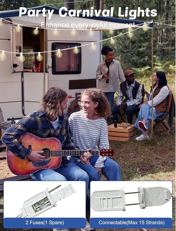 - End to End Design: Globe led string lights are 12" lead with male plug, 24" spacing between bulbs, 12" tail with female connector, total length 100 feet. G40 led patio string light is end to end connectable, it can be connected up to 14 strands to light up larger space