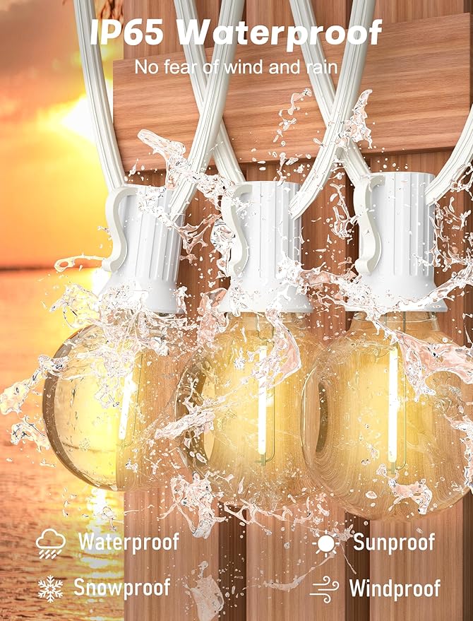 - Pratical & Easy to Install: 100Ft globe led string lights, Outdoor hanging string lights come with 50 G40 led globe bulbs and 2 spare bulbs. The patio string light is easy to install that each light socket has a clip to fix or place the light string to anywhere as your need