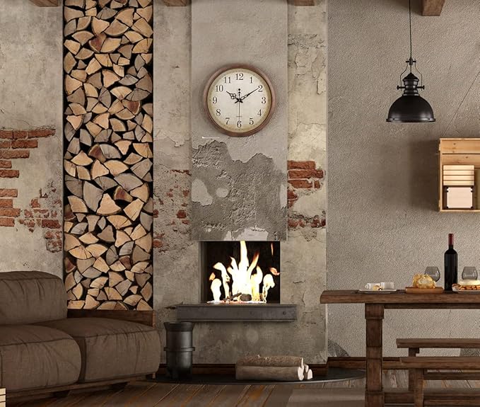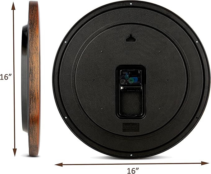 Bernhard Products Vintage Brown Wall Clock Silent Non Ticking 16 Inch Extra Large Quality Quartz Battery Operated Round Decorative Easy to Read for Home Kitchen Living/Dining Room Bedroom Office