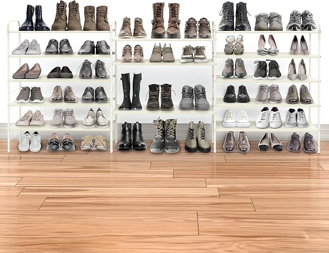 - Stores up to 15-24 pairs of shoes, Additional bottom storage for slippers