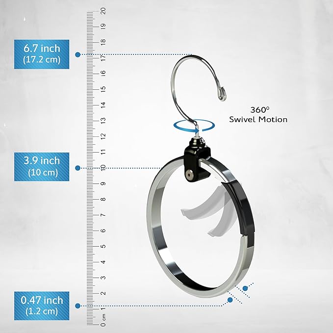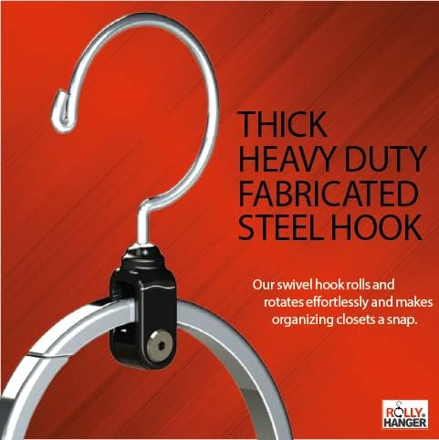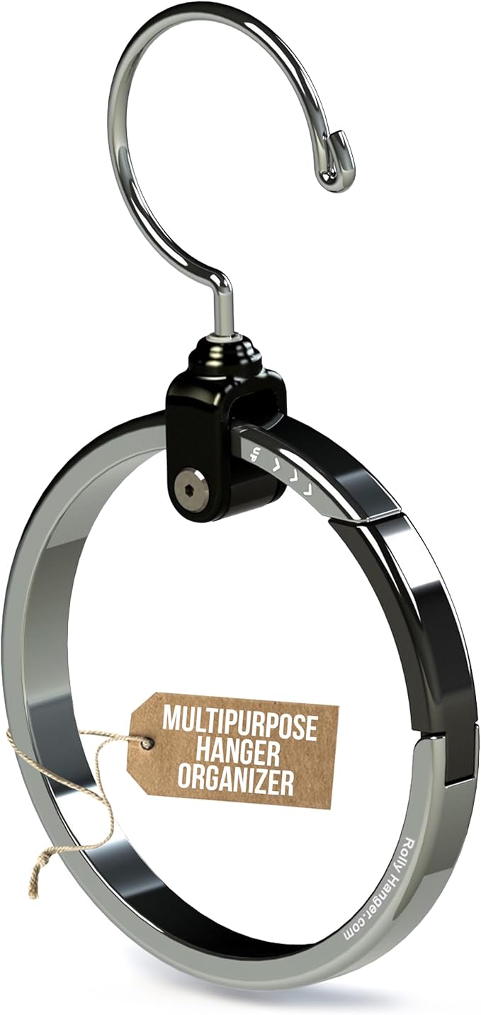 - Heavy Duty Durability: Built to last, the Rolly Hanger features a sturdy aircraft aluminum ring, stainless steel hook, and chrome finish, supporting up to 15 pounds. It's like having a valet in your closet- perfect for any home, garage, RV, or dorm.