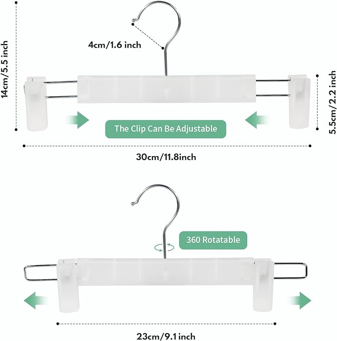 - 【Excellent Design】- There are movable clips at both ends of the hanger, which can be adjusted from 21cm to 28cm.It's convenient for you to clip different clothes.Besides, the clip has a non-slip design, that can clip your clothes and avoid clothes falling.