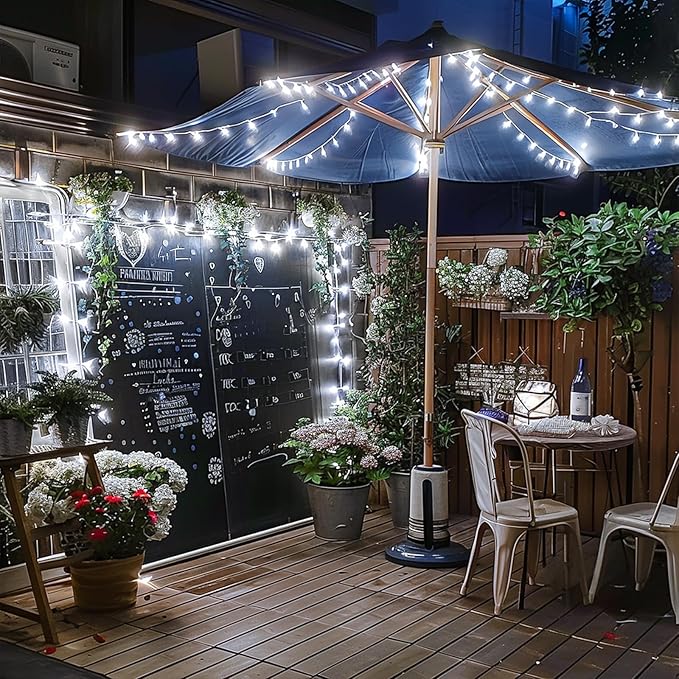 - 【Waterproof & Safe Christmas Lights Outdoor】Waterproof design white LED Christmas lights are perfect for both indoor and outdoor decorations. Don’t worry about using it in rain or snow. The premium material makes it tough and sturdy, not easy to break, has the characteristics of low voltage and low power consumption. The adapter of Christmas lights passes with UL certification to ensure personal safety. Note: The transformer is NOT waterproof, please place it in a dry place.