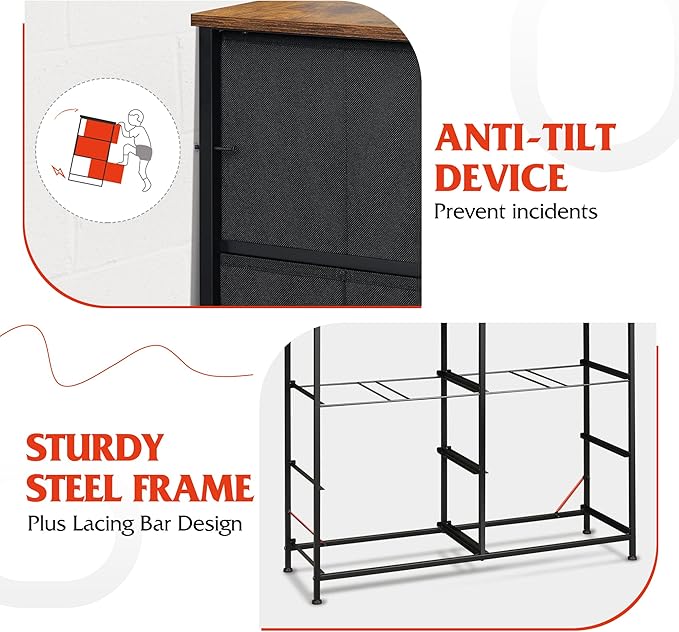 - Sturdy and Durable: The bedroom dresser can also be TV stand for small-size TV; With strong steel frame, water-resistant top and high-grade fabric drawers, the dresser is designed for a long service time.