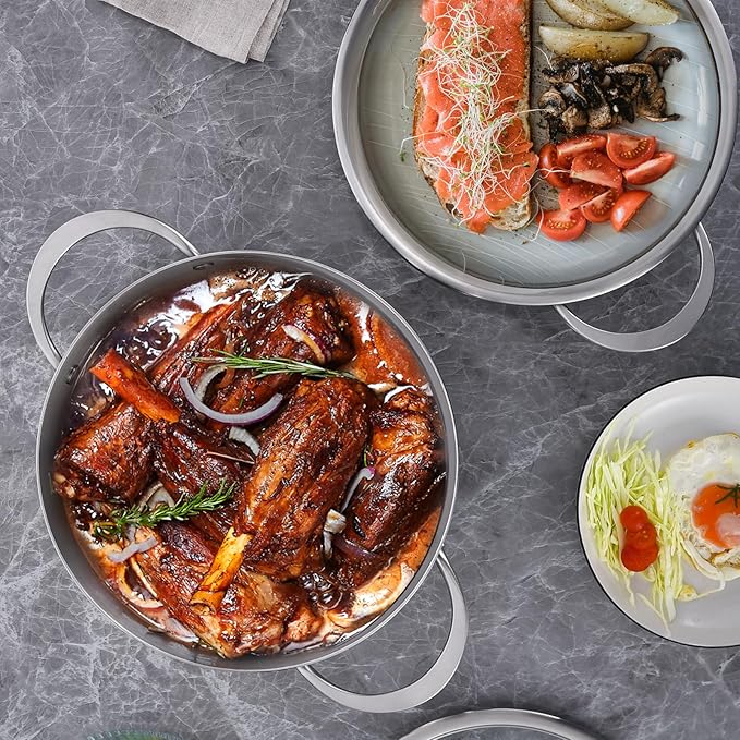 - Tri-Ply Clad:Made with a high pure aluminum core bonded together with 2 layers of durable stainless steel, excellent durability and even heat distribution,saved energy more than 20%.