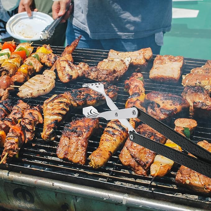 - Ergonomic Handle Design --- Non-slip, smooth, comfortable grip, ensure your grip is firm. A light and strong long barbecue tong allows you to minimize the pressure on your wrist. Perfectly grasped and turned food.