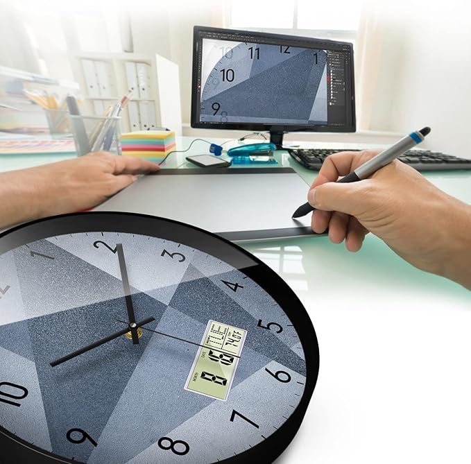 - 🕐【LCD CALENDAR & TEMPERATURE】- This wall clock adopting large HD LCD screen that shows the month, date, the day of the week and temperature clearly. And you can switch between Celsius and Fahrenheit. With this wall clock, you can not only read the time but also know the date and temperature.