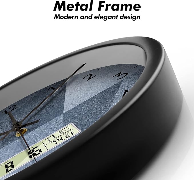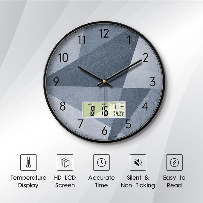 - 🕐【LCD CALENDAR & TEMPERATURE】- This wall clock adopting large HD LCD screen that shows the month, date, the day of the week and temperature clearly. And you can switch between Celsius and Fahrenheit. With this wall clock, you can not only read the time but also know the date and temperature.