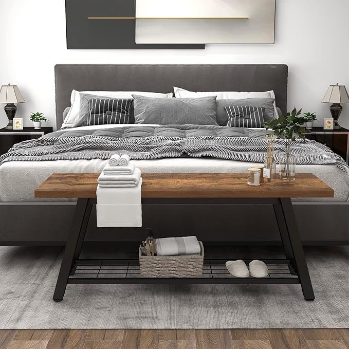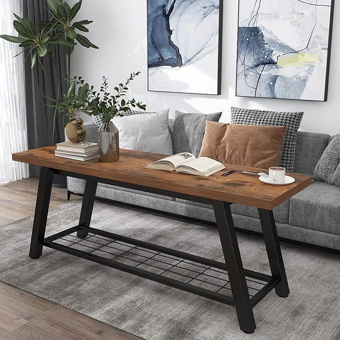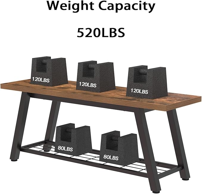 - Multifunctional Design.This simple Shoe Bench with industrial-inspired details and simplicity clean lines, makes your space look more neat, generous and comfortable.It can be used as shoe rack for entryway, coffee table for living room, bed end storage bench for bedroom, sofa rack, plant rack and so on
