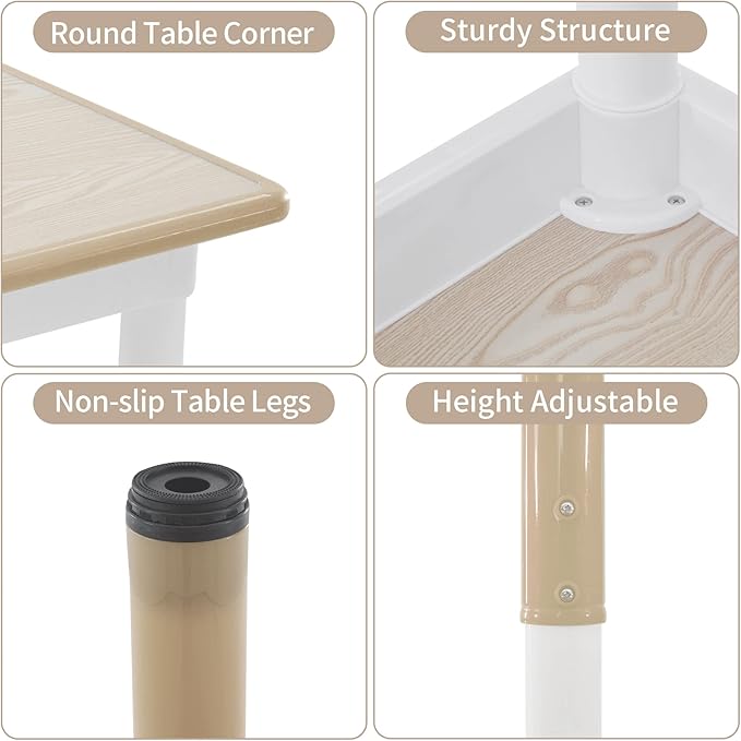 - 【HEIGHT ADJUSTABLE】:The table can be adjusted between 7 height levels (18.9" - 23.6") and can hold up to 330 lbs; The chair is adjustable in 3 positions (10.6" - 12.2") and has a maximum load capacity of 180 lbs.